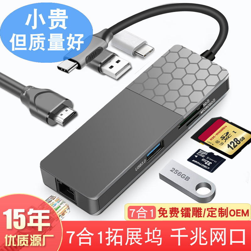Dock ekspansi typeC model pribadi, HDMI HD 4K antarmuka jaringan gigabit Tujuh dalam satu, pengisian daya Cepat