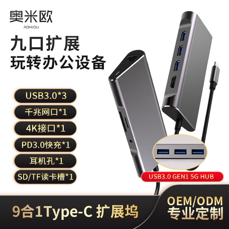 Stasiun Dok tipe-c USB 3.0 5G, Dok ekspansi sembilan dalam satu Gigabit Nic 4K HD pembaca kartu antarmuka