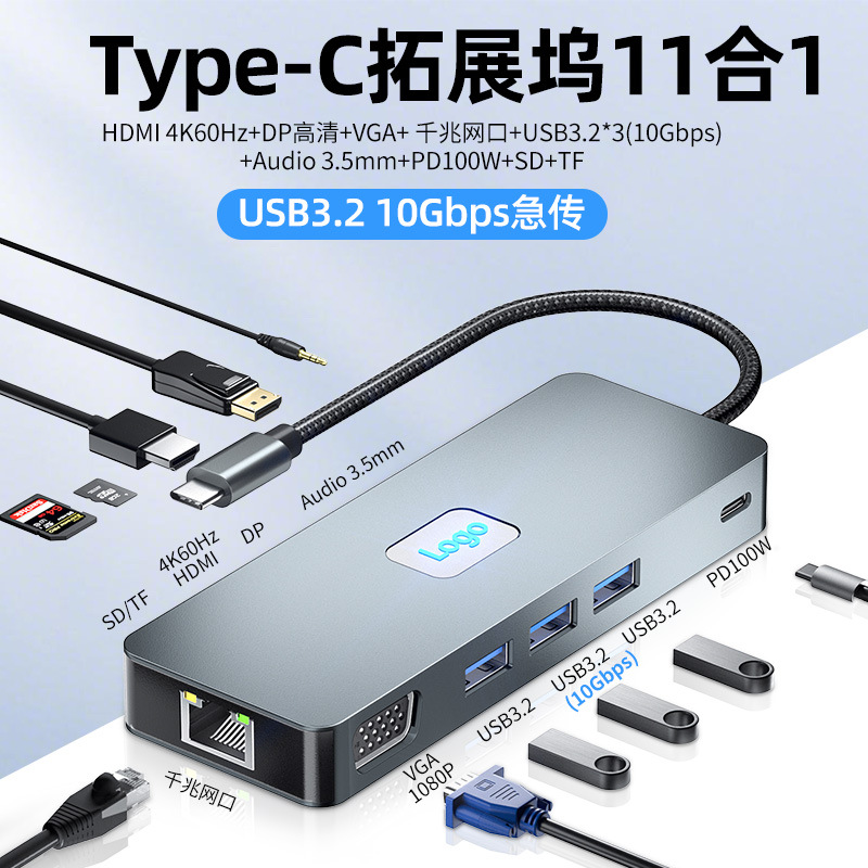 Typec dock ekspansi dock ganda DP/VGA empat layar berbeda Gigabit netport 3.0usb converter notebook dock