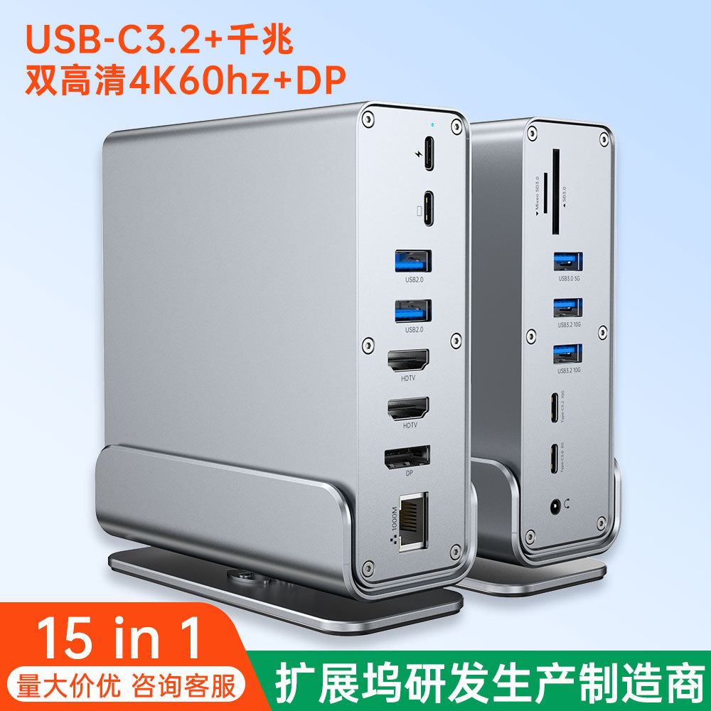 Ekspansi Type-c3.2 Lintas Batas Dock Ganda HD Tampilan Berbeda DP Membaca Gigabit Desktop Vertikal Ekstensi 15 in 1