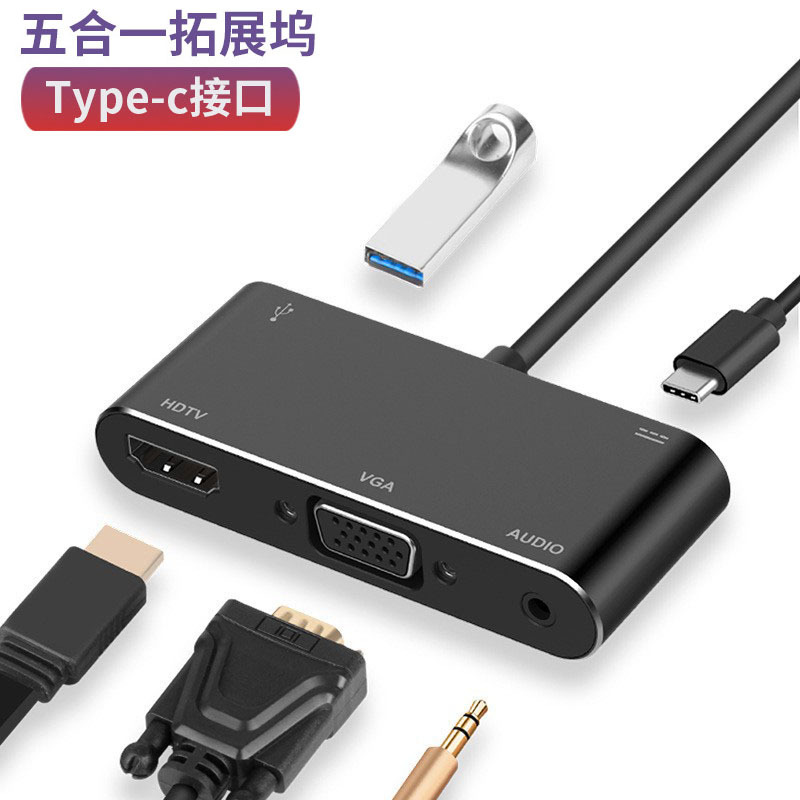 Lintas batas diskon besar lima dalam satu Dok ekspansi tipe-c ke HDMIVGA USB3.0 notebook hub multi-fungsi