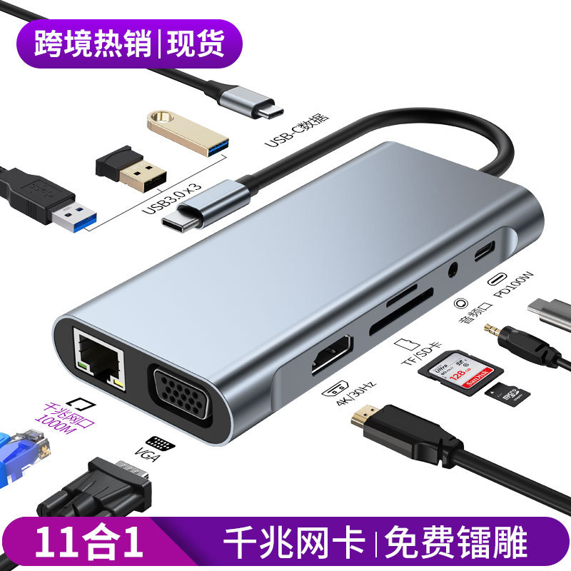 Produsen dalam stok lintas batas 11-in-one jaringan port docking station Gigabit laptop hub multi-interface expansion dock