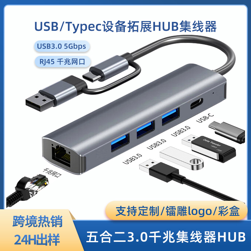 Cross-border RJ45 hub port jaringan Gigabit pembagi komputer ekspansi USBHUB untuk Apple Huawei stasiun Dok