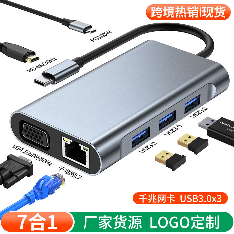 Gratis pengiriman dari 10 lintas batas dalam stok Amazon penjualan laris kartu jaringan gigabit usb stasiun Dok 7-in-1 Dok ekspansi