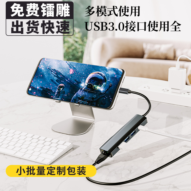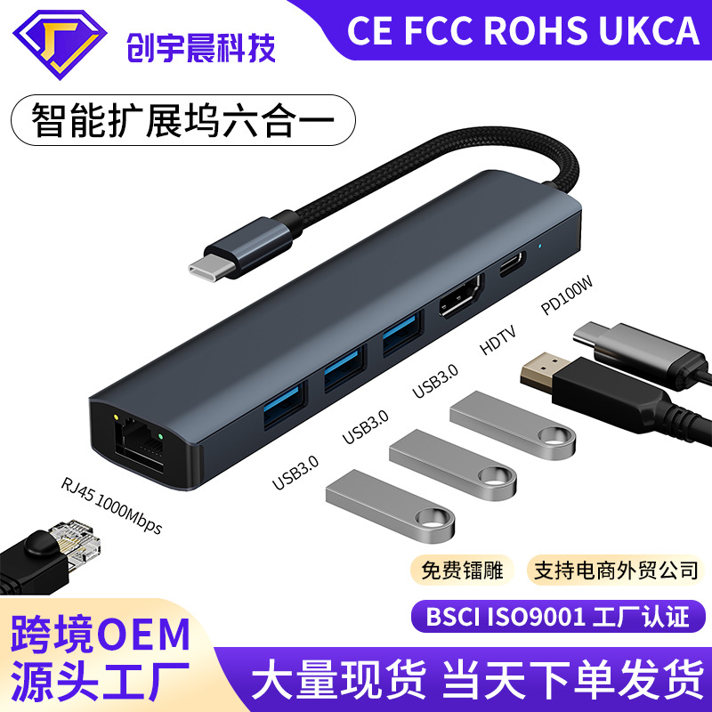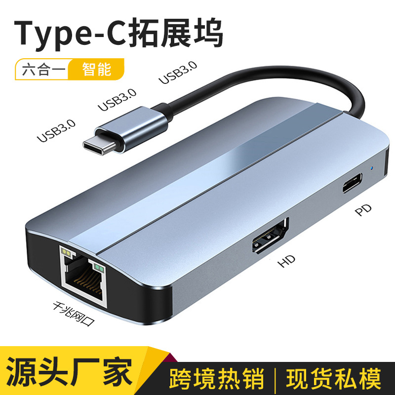 Stasiun Dok port jaringan gigabit model pribadi, konverter notebook splitter USB 3.0, Dok ekspansi tipe-c enam dalam satu