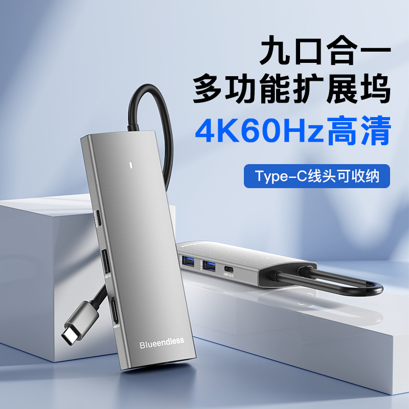 Stasiun Dok typec hdmi2.0 HD 4K, port jaringan gigabit, konverter laptop Dok ekspansi sembilan dalam satu