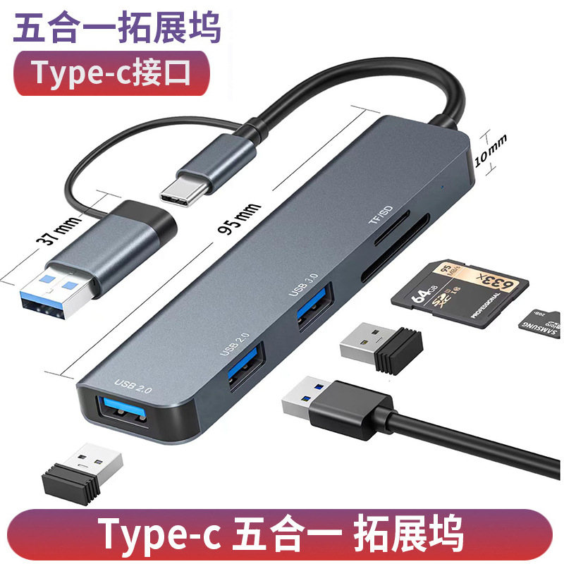 Hub multifungsi stasiun Dok, pembaca kartu SD/TF lintas batas lima dalam satu stasiun Dok tipe-c/USB ke USB 3.0