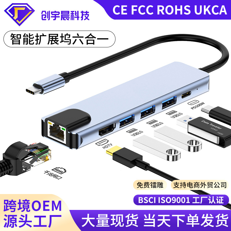 Stasiun Dok tipe-c model pribadi ke port jaringan gigabit usb 3.0 HUB PD pengisian daya Cepat Dok ekspansi enam dalam satu