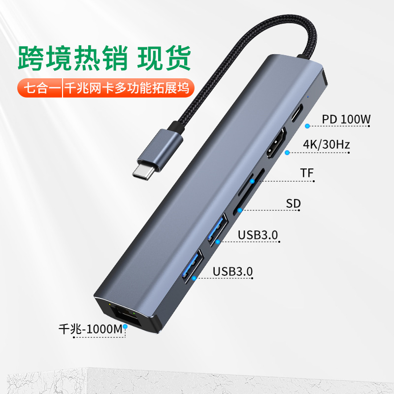 USB 3.0 lintas batas Gigabit NIC dock ekspansi Tipe C konverter laptop stasiun Dok tujuh dalam satu