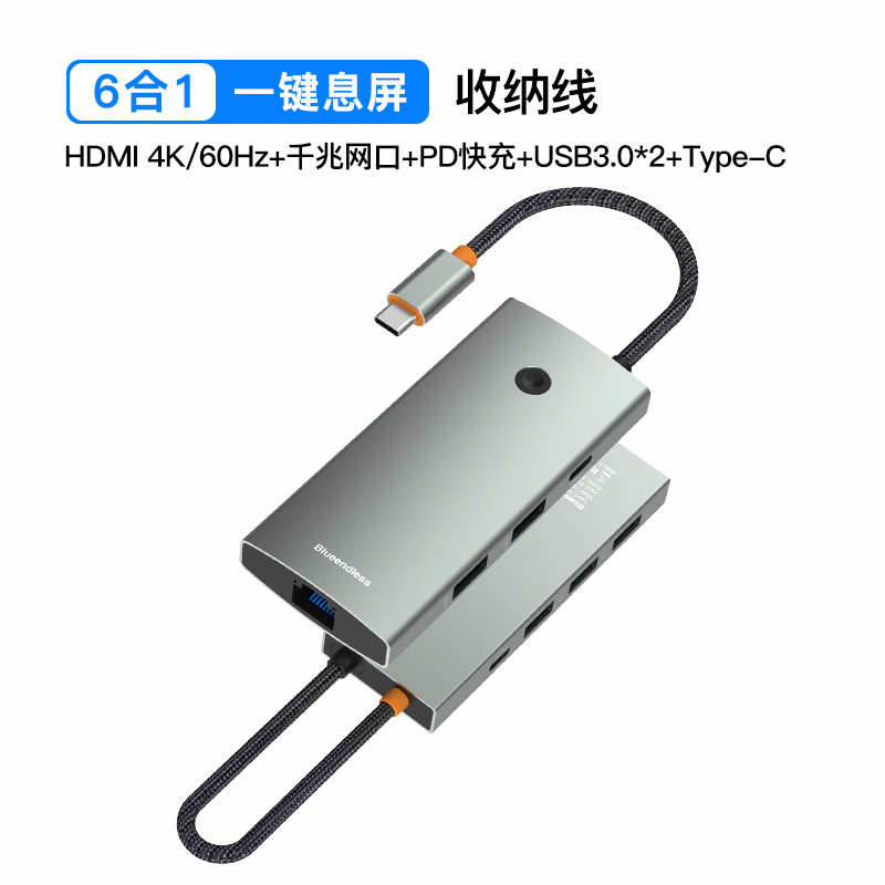Dock ekspansi Gigabit Typec, stasiun Dok enam dalam satu, Dok ekspansi 4K HD HDMI PD pengisian cepat notebook usb expander