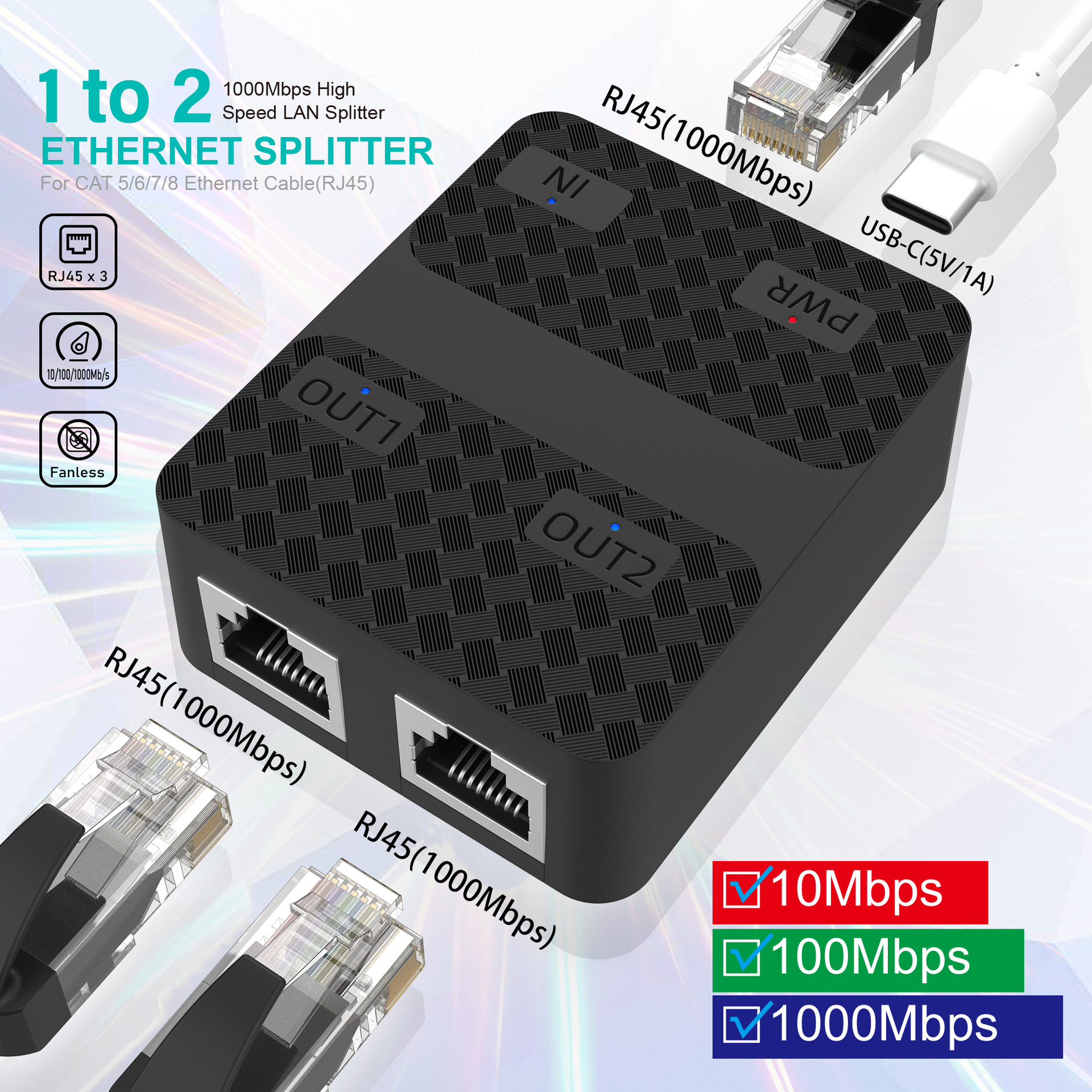 1000M Gigabit Dispenser Jaringan Satu Bagian Dua Switch Konektor Kabel Jaringan RJ45 1 Masuk 2 Alat Pemisah Kabel Jaringan Keluar