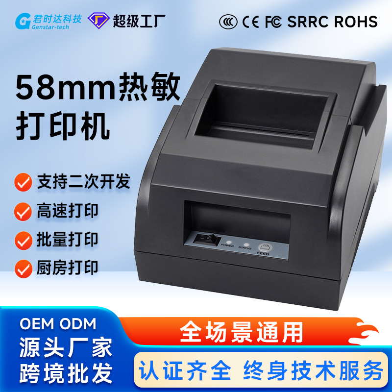 Junshida pencetak tanda terima kasir toko swalayan cetak antarmuka USB 58MM pencetak tanda terima termal