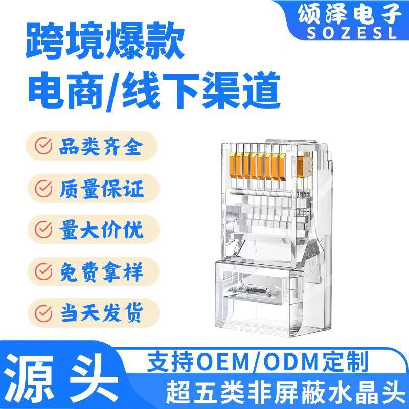 Songze RJ45 Kategori 5e crystal head, tanpa pelindung, tembaga murni, tiga cabang, berlapis emas, untuk keamanan dan rekayasa jaringan tegangan rendah.