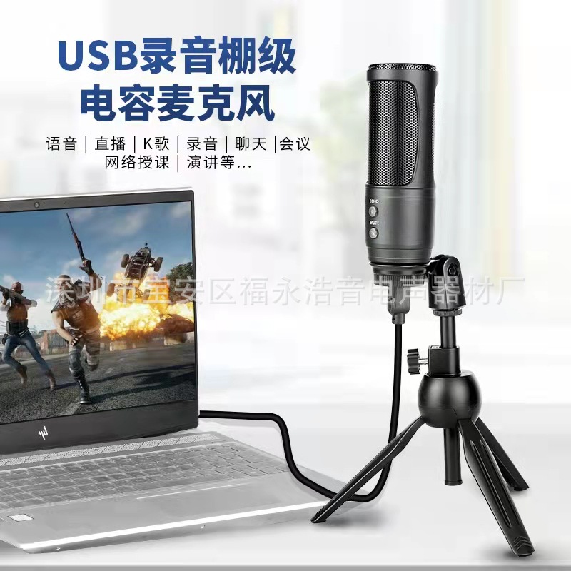 Mikrofon kondesor USB, set braket mikrofon komputer rekaman karaoke komputer suara game desktop