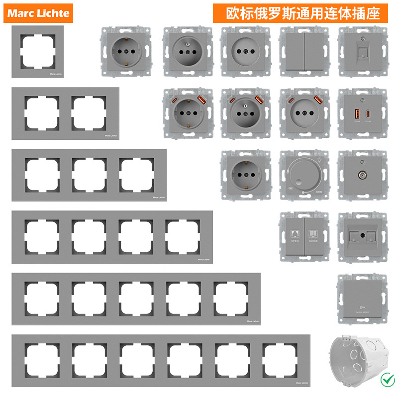 Abu-abu standar Eropa Rusia USB dengan jaringan daya Type-C standar Jerman soket siam panel saklar 16A