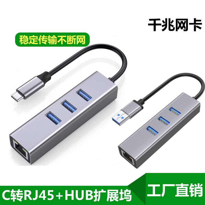 Stasiun Dok tipe c, port jaringan gigabit USB3.0 hub empat dalam satu extender notebook komputer rj45