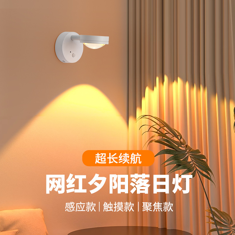 Bisnis Listrik Lintas Batas Tanpa Kabel Isi Ulang Lampu Dinding Magnetik Lampu Sorot Matahari Terbit Merah Sinar Matahari Terbit Tiga Warna Lampu Suasana LED Kamar Tidur