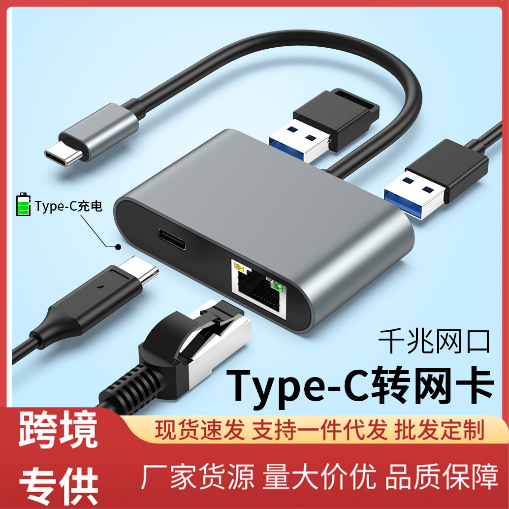 Type-c Gigabit Ethernet Converter RJ45 Koneksi Kartu Jaringan Ekspansi PD Pengisian Cepat 60W Antarmuka USB Ganda Membaca Sama