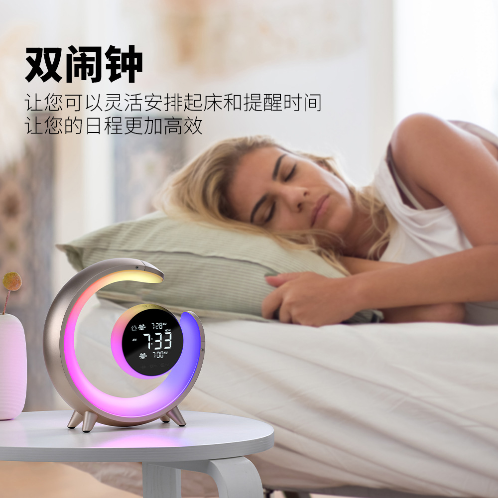 Amazon jam lampu besar gaya baru lampu warna-warni waktu jam alarm Ganda musik pengisian daya USB lampu malam bangun