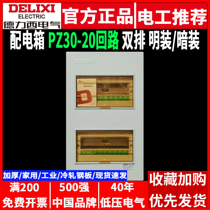 Kotak distribusi Delixi PZ30 kotak terbuka udara rumah tangga dalam ruangan kotak distribusi daya kuat pencahayaan tersembunyi 20 sirkuit baris ganda
