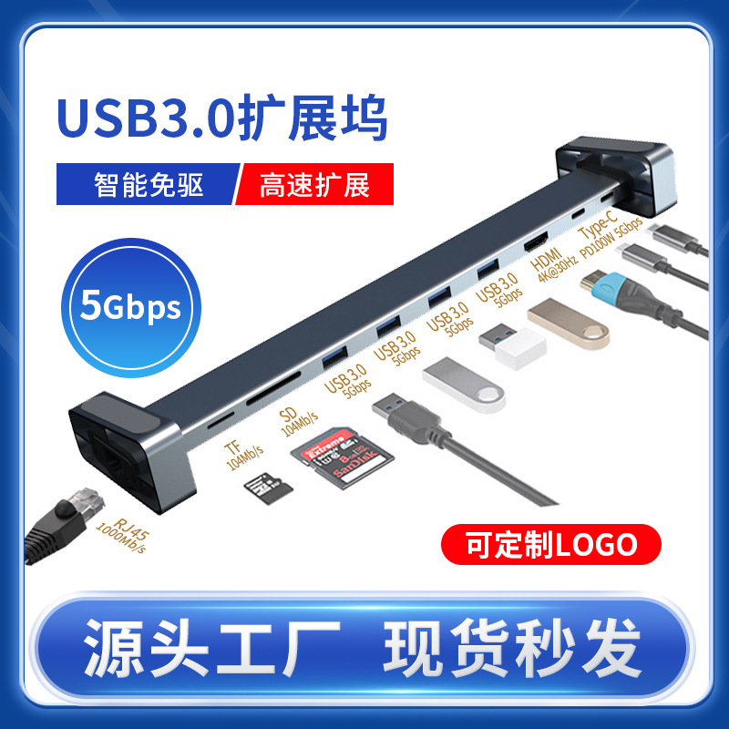 Stasiun Dok tipe-c hub multifungsi sembilan dalam satu, stasiun Dok HDMI Gigabit USB3.0HUB splitter dock ekspansi