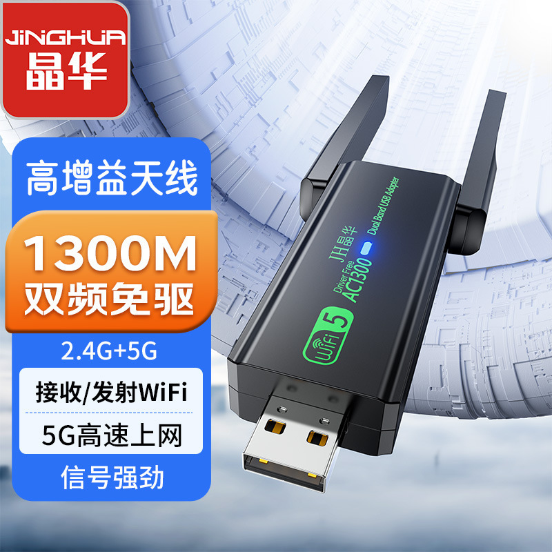 Kartu Jaringan Nirkabel Jinghua 1300M dual-band 5G Gigabit Free Drive Wifi Menerima Transmitter Desktop Komputer USB