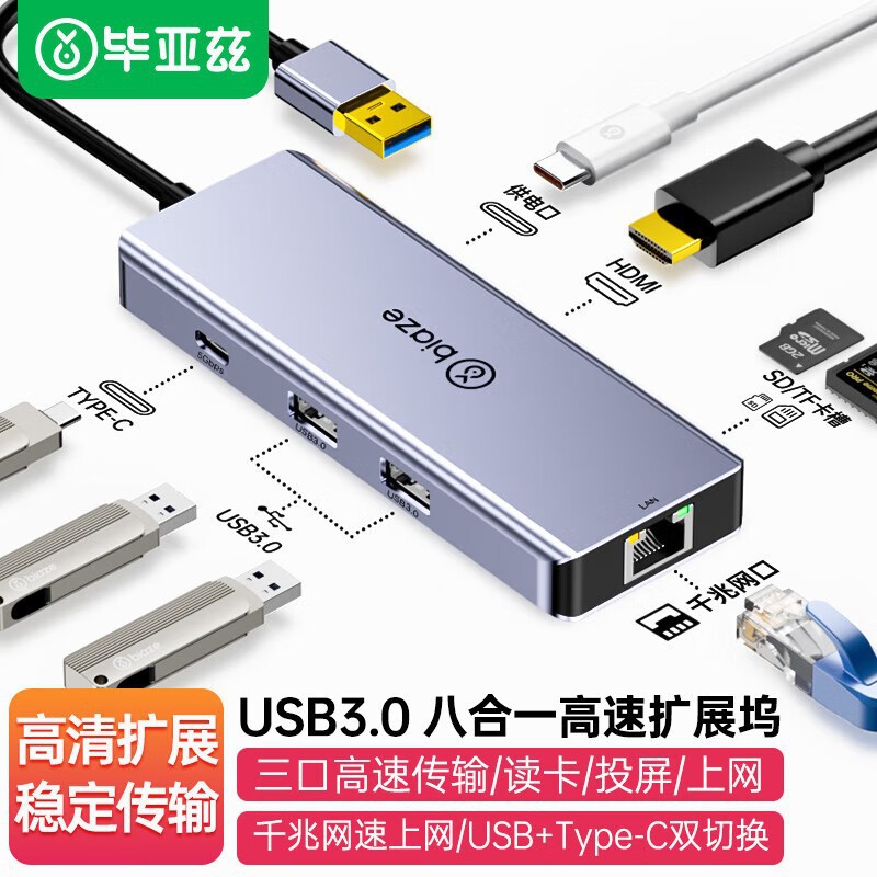 Biazusb Expansion Dock octa in one multi-interface split Gigabit Network Multifungsi Dock Expansion USB
