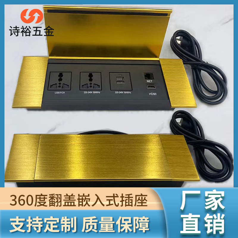 Pabrik grosir soket desktop tertanam tersembunyi multimedia soket USB baru aluminium Aloi flip socket