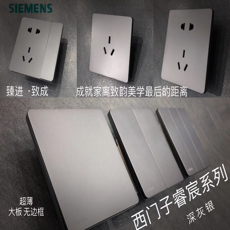 Siemens switch soket Rui Qi, paket panel rumah tangga USB lima lubang tipe 86 perak abu-abu gelap