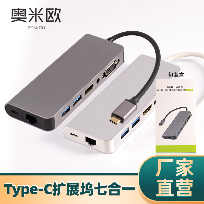 Stasiun Dok TypeC, Dok ekspansi multi fungsi 7-in-1 ke VGA/HDMI ke audio, mendukung gigabit Nic PD