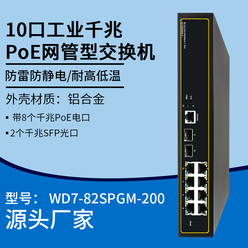 Pemisah hub kabel jaringan sakelar pipa jaringan Gigabit Industri 10-port
