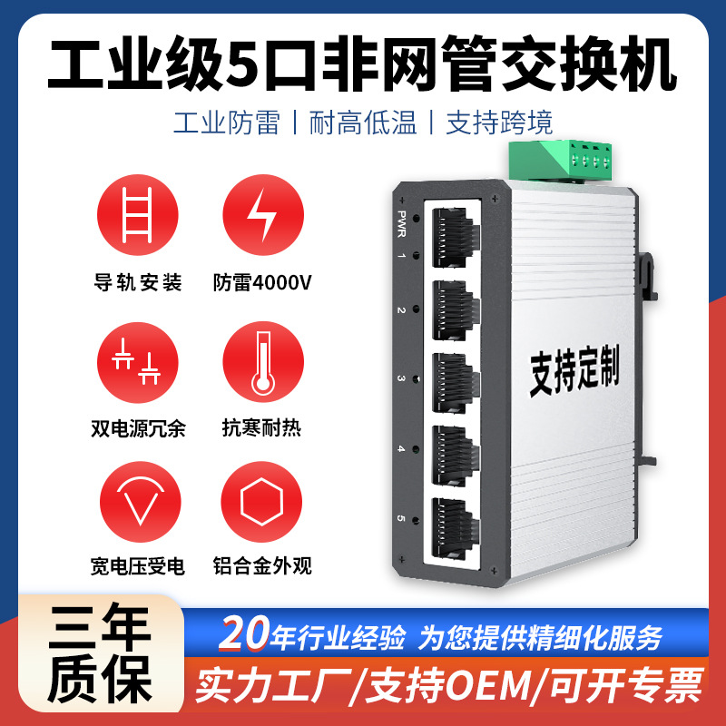 Switch Kelas Industri Semua Gigabit 5-port 8-port Panduan Ethernet Non-Management Switch Hub Suhu Lebar