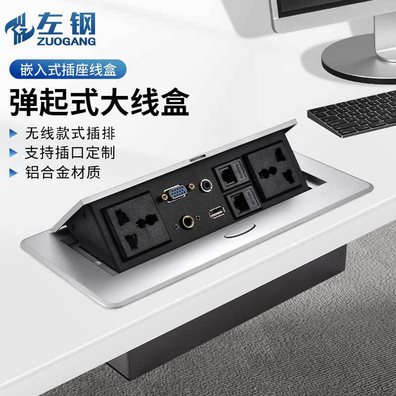 Baja Kiri Multimedia Bouncing Soket Tertanam Desktop Kotak Kabel Pengisi Daya USB untuk Rapat Kantor