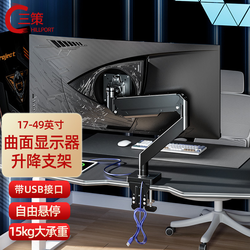 Tiga Strategi 34-43-49 Inci Layar Melengkung Esports Monitor Hover Lengan Penambah Teleskopik Rak dengan Antarmuka USB M7U