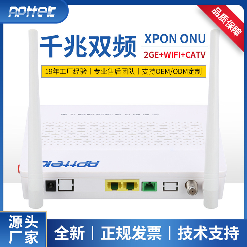 Baru kucing optik 2GE + WiFi + CATV + USB Gigabit Cina dan Inggris XPON GPON ONU ONT produsen