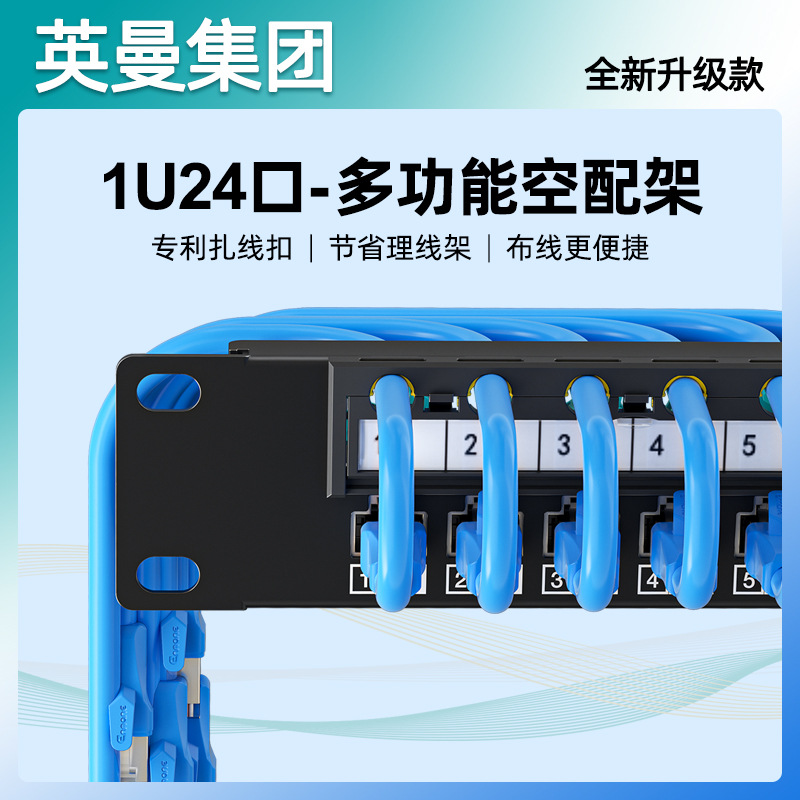 Jaringan Inman bingkai distribusi kosong 1U24 bingkai manajemen kabel port bingkai jumper kabel tembaga berpelindung lurus multifungsi dengan gesper kabel