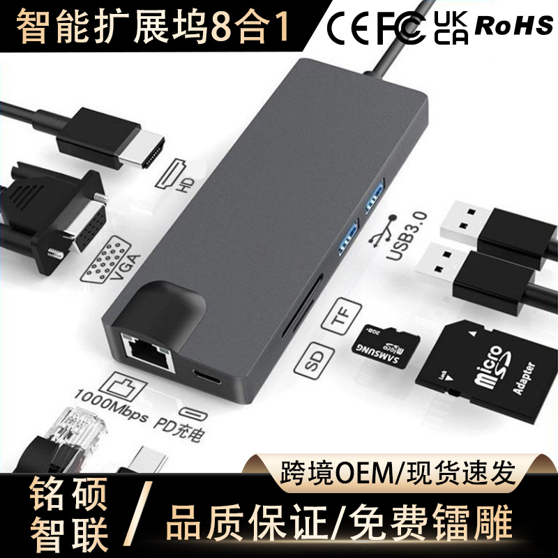 Cross-Border Eight-in-One Docking Typec ke VGA 100 Mb/Gigabit Network Port PD Ekspansi Dock Produsen Hub USB