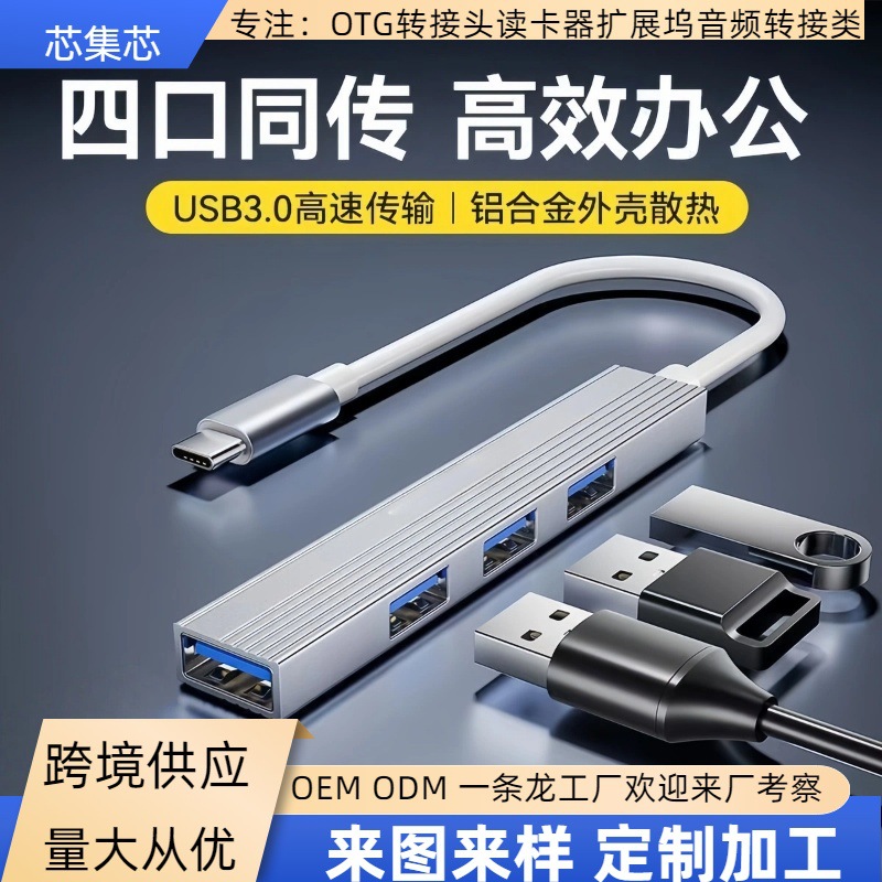 USB3.0 extender hub tipe C, membaca U disk hard disk TF/kartu SD menghubungkan mouse keyboard 3.5 headset