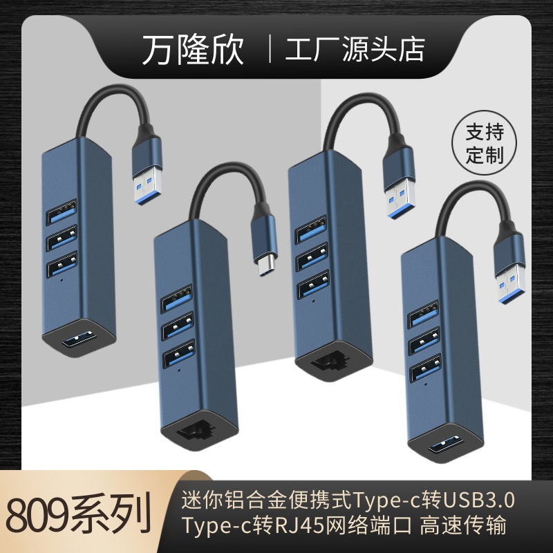 Dok ekspansi Typec paduan aluminium 3,0hub splitter 100 m hub port jaringan multifungsi stasiun Dok 4-in-1