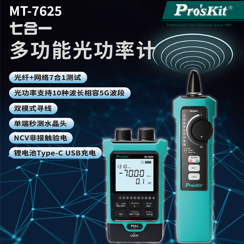 Baugong MT-7625 pengukur daya optik 7-in-1 kabel jaringan presisi tinggi