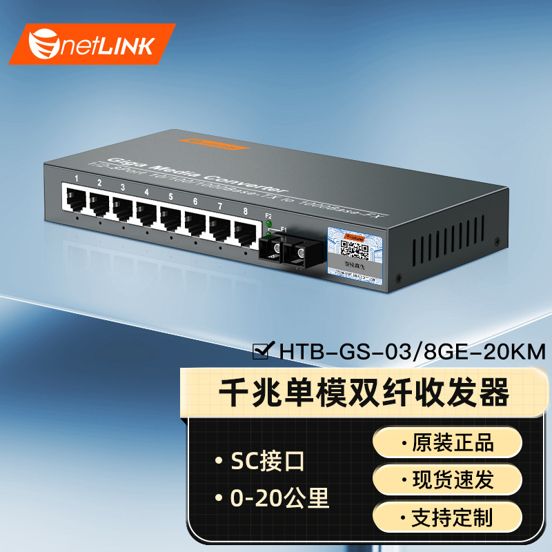 NetLINK transceiver serat optik gigabit 1 cahaya 8 listrik mode tunggal serat ganda HTB-GS-03/8GE-20KM satu unit