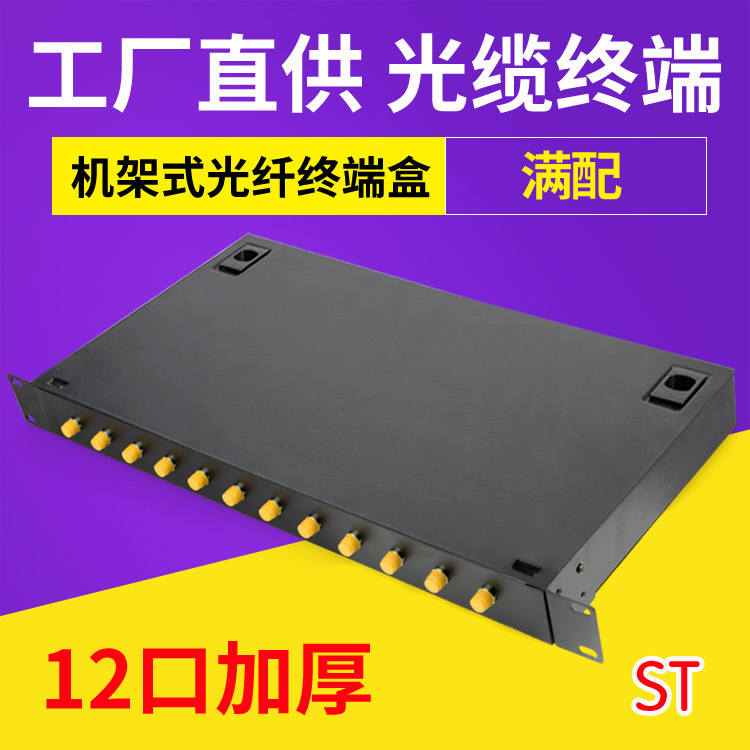 Kotak terminal serat optik ST bayonet 12-port fusion junction box rak kabinet 19 inci penuh dengan ketebalan flensa kuncir
