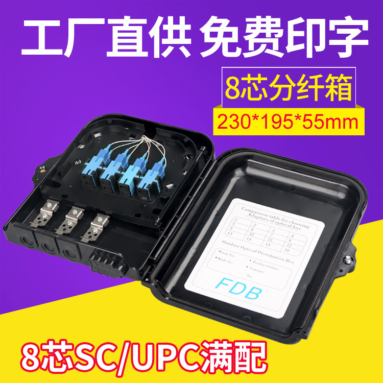 Kotak distribusi serat optik 1 menit 8 SC penuh dengan 8-core kotak serat optik luar ruangan gantungan dinding tiang 3 in 8 out splitter