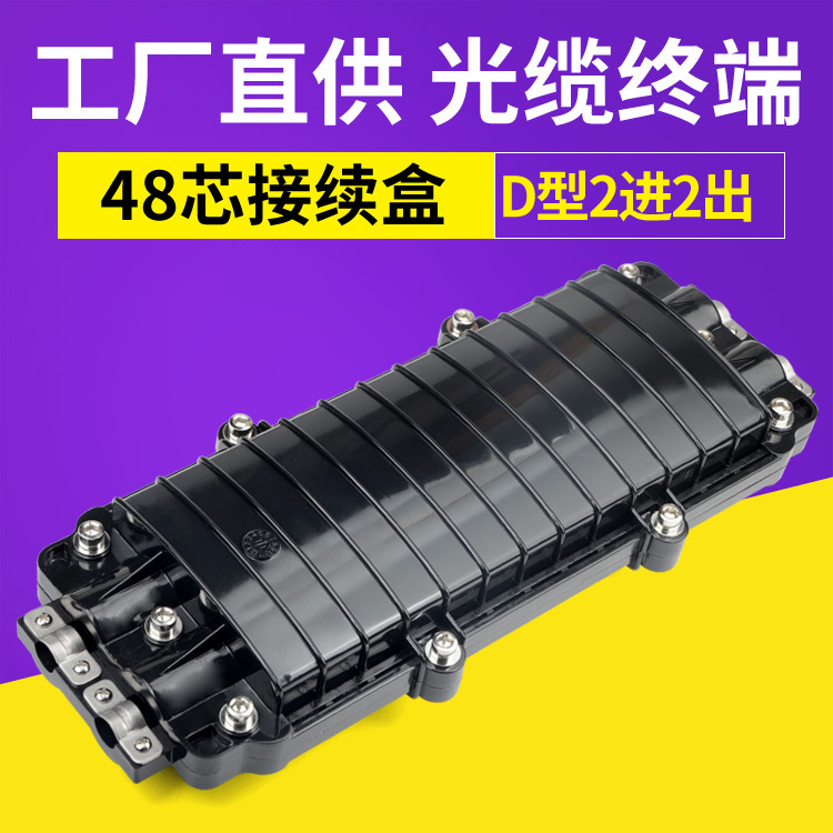 Kotak konektor serat optik 48-core, kotak koneksi kabel optik horizontal 2 in 2 out 24 fusion Haff gantung dinding atas kepala horizontal tahan air