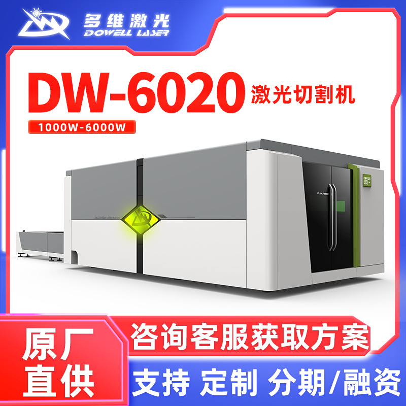 Mesin pemotong serat optik Lembaran galvanis baja karbon DW6020 tertutup penuh 3000W baja tahan karat mesin pemotong laser logam