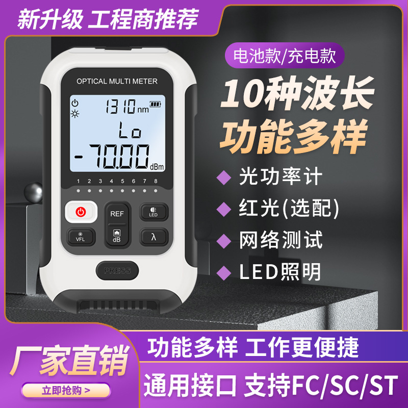 Alat pengukur daya optik mesin terintegrasi cahaya merah multi-fungsi serat optik penguji redaman cahaya detektor sumber cahaya merah pena pencahayaan