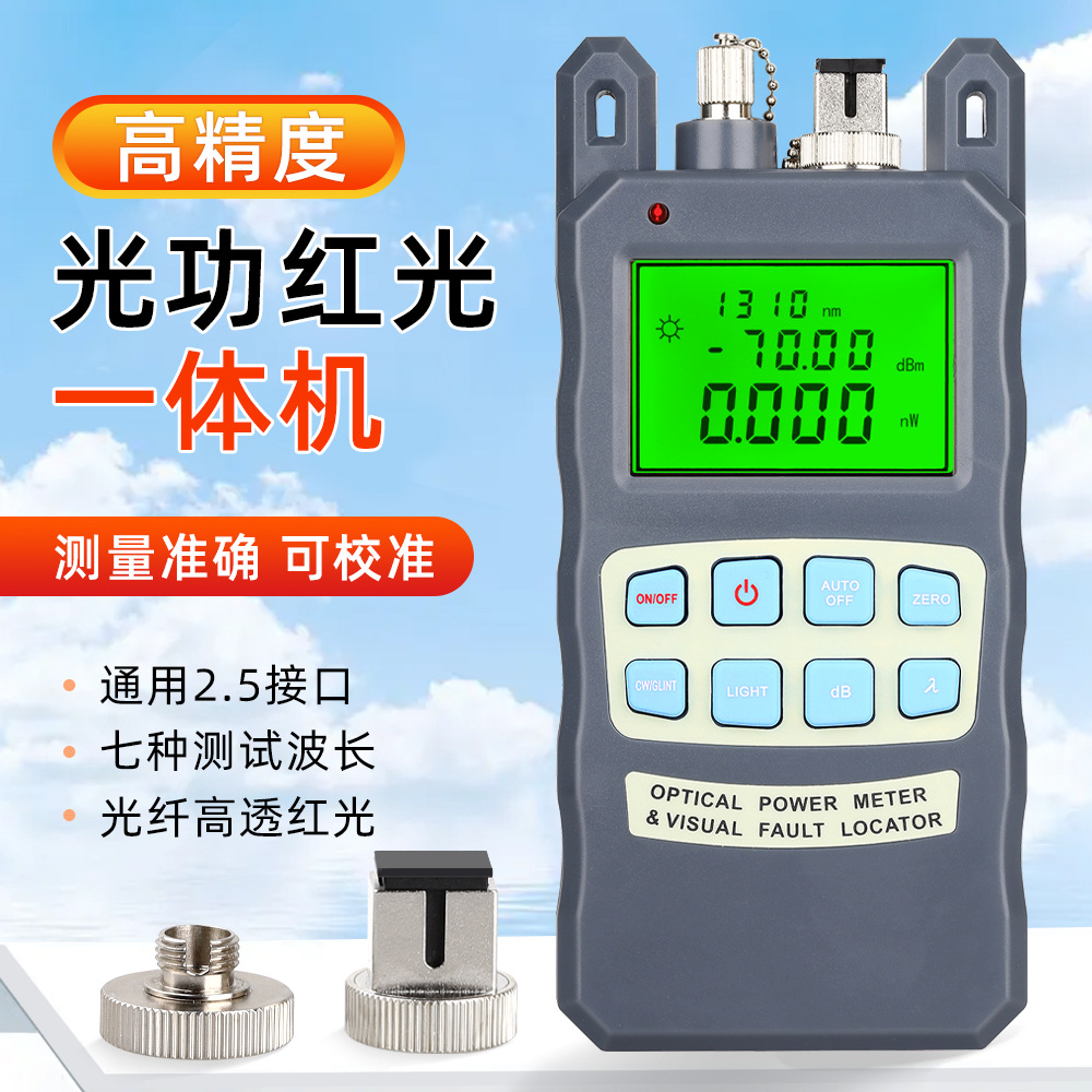 Pengukur daya optik sumber cahaya merah mesin all-in-one 1MW uji redaman cahaya pena deteksi kesalahan 5km pena lampu merah