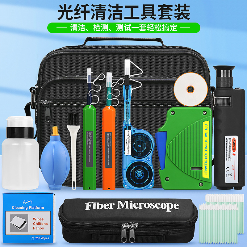 Set Alat Pembersih Serat Optik Set 14 Set Kaca Pembesar Serat Optik Permukaan Akhir Optik MPO Kotak Pembersih