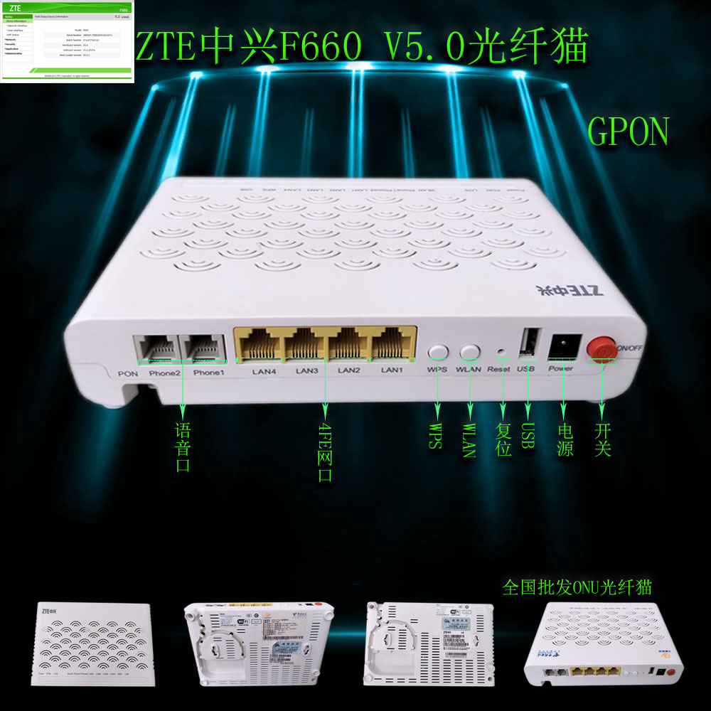 Berlaku untuk ZTE 4 Port jaringan + 2 Port suara + WIFI nirkabel/F660 terminal V5.0 kucing serat optik Tiongkok dan Inggris