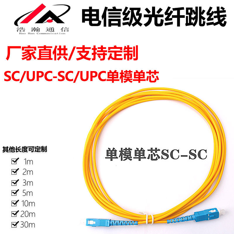 Jumper serat optik mode tunggal inti tunggal SC/UPC-SC/UPC kuncir 1 m 3 m 5 m 10 m 20 kepala persegi kelas telekomunikasi